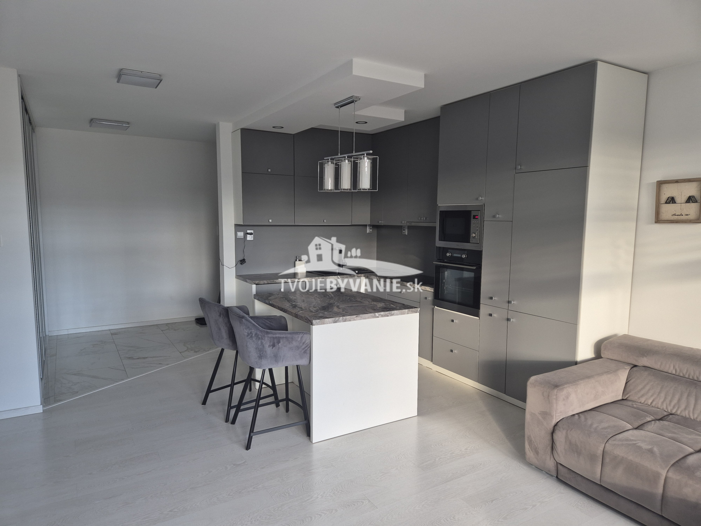 Realitná kancelária Tvoje Bývanie ponúka na predaj komplet zariadený 2 izbový byt s dvoma loggiami v novostavbe Belveder.Byt sa nachádza na 1. poschodí v tichom prostredí s výbornou občianskou vybavenosťou. Pozostáva zo vstupnej chodby, s kuchyne prepojenej s obývacou izbou, splálňou , kúpelne a toalety.V byte je nainštalovaná klimatizácia, vonkajšie žalúzie na elektrické ovládanie priamo z bytu,eletrický kotol na ohrev teplej vody a podlahového vykurovania v celom byte.