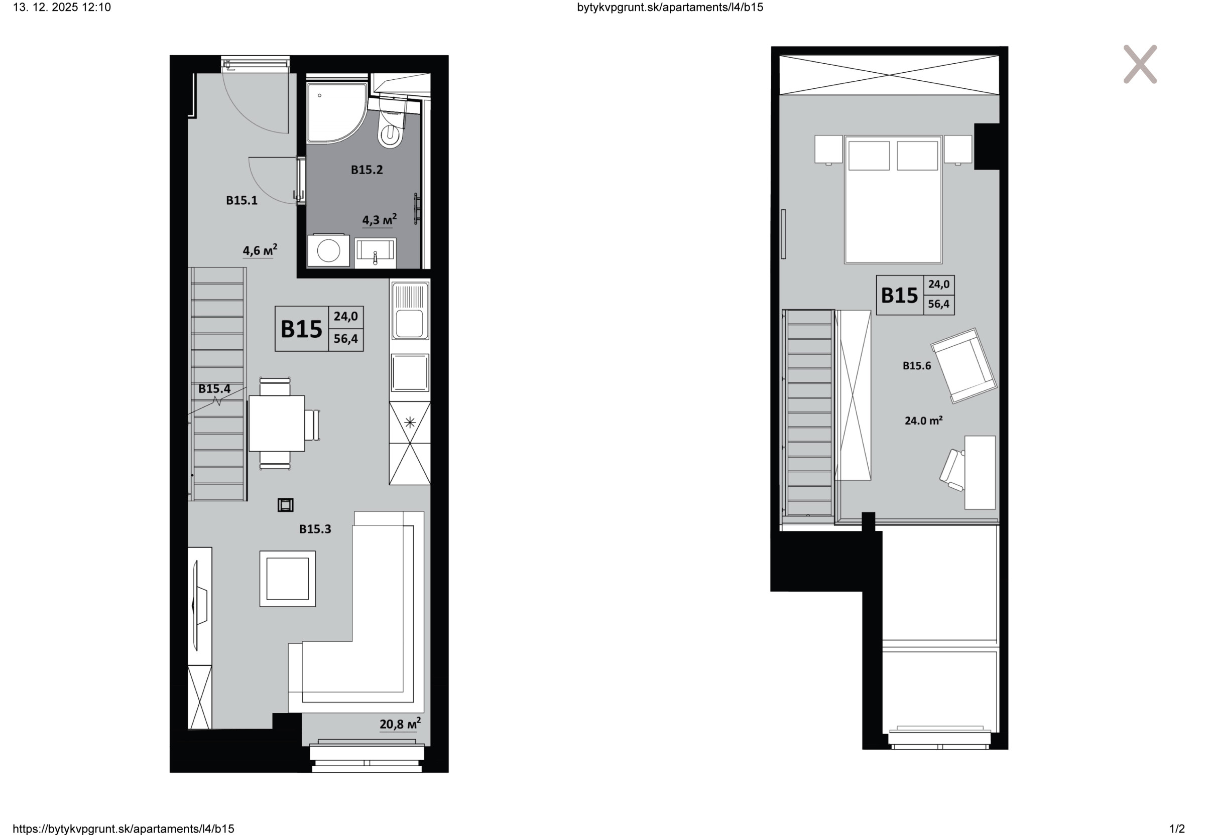 1 izbový byt s mezonetom KVP Grunt č. 15
